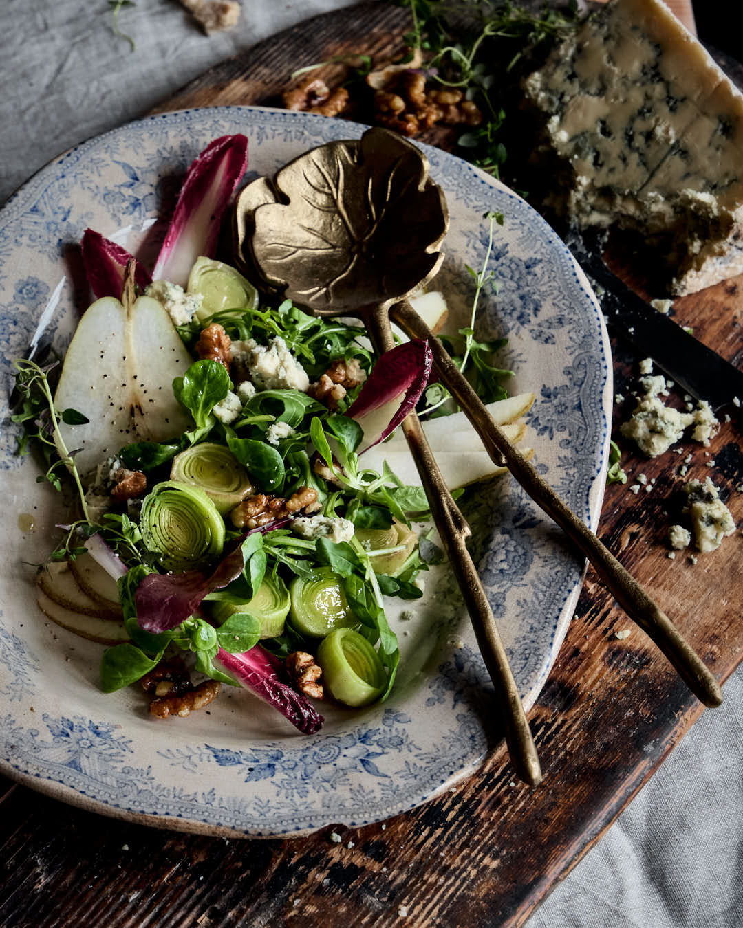 There’s a kind of quiet winter magic in a salad like this… silky leeks still warm from the pan, sweet pears blushing against the cold, Dorset Blue Vinney crumbling like little pockets of comfort, and honeyed walnuts catching the light like tiny golden jewels.